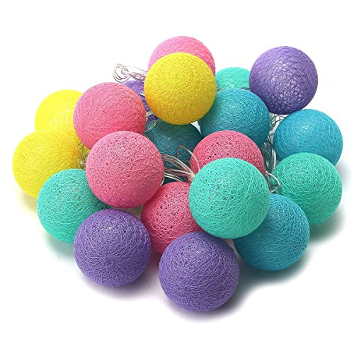 Morbuy Guirlande Lumineuse Boules, Piles Décoration Intérieur 10 LED Coton Boule Chaîne Lumièr pour Fête Noël Halloween Mariage Chambre Romantique Décor (3.3M / 20 Boule lumière, Macaron)