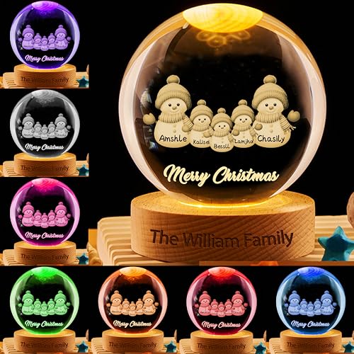 Boules à Neige de Noël Personnalisable,Boule de Noël Lumineuse avec Bonhommes de Neige Prénom Personnalisé,Veilleuse LED Decoration Noel Interieur Maison Cheminée pour Table,Idee Cadeau Noel