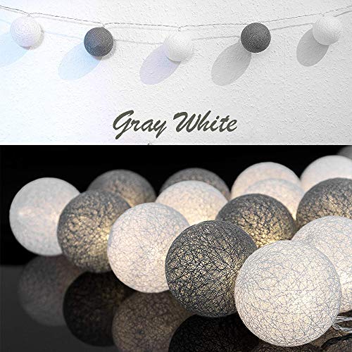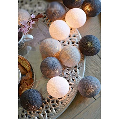 KWODE Guirlande Lumineuse Boule Coton, Interieur Decoration Noël Deco, 3.5M 20er LED Globe Light, Fille, Princesse, Enfant, Bebe, Chambre Mariage Atmosphera Décorations, (USB 6cm Gris/Noir)