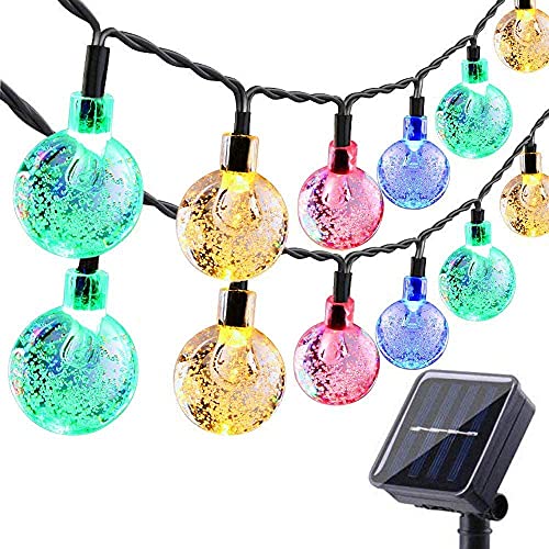 Guirlande lumineuse solaire d'extérieur - 8 m - 30 LED - Étanche - 8 modes - Boule de cristal - Décoration d'intérieur et d'extérieur - Pour terrasse, cour, fête, Noël - Multicolore