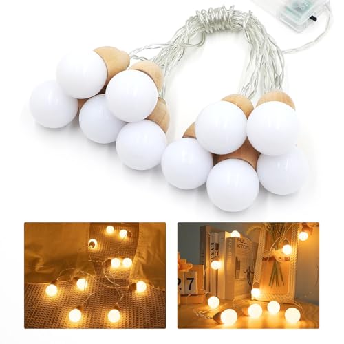 Bigzom Guirlande lumineuse 2M 10LED, Guirlande Lumineuse intérieur 10 Boules, Blanc chaud à pile avec fonction minuterie, boules lumineuses à pile Ø30mm par boule