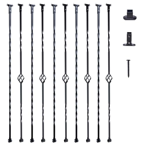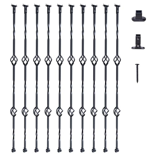 VEVOR Balustres en métal pour escalier 1122 mm barres rampe décoratives en acier galvanisé, lot de 10 barreaux de sécurité panier simple torsade avec chaussures, vis pour rampe d'escalier colimaçon