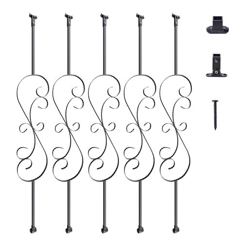 VEVOR Balustres en métal pour escalier 1122 mm barres rampe décoratives en acier galvanisé, lot de 5 barreaux de sécurité S avec chaussures et vis pour rampe d'escalier en spirale creuse, noir satiné