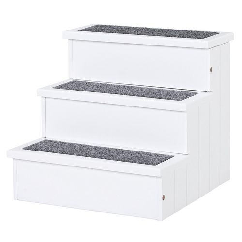 Escalier pour chien animaux rampe 3 marches revêtement tapis coffre interne rangement blanc