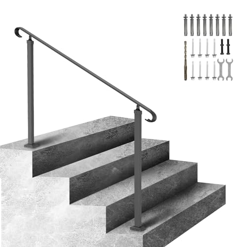 VEVOR Garde-Corps Rampe Escalier Main Courante en Fer Forgé Balustrade Rambarde 3 Marches Réglable 48 cm Angle 0-52,8° pour Sécurité des Escaliers et Marches Jardin Entrée Portail 140x13,2x97,4 cm