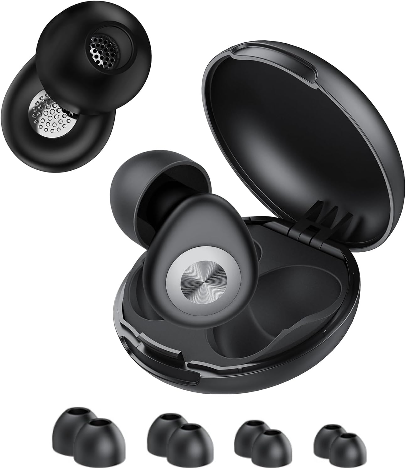 JEXNOVASHOP-Bouchon D'oreille pour Dormir, 45dB | 4 Tailles (XS/S/M/L) Boule Quies, Réutilisables Réduisant le Bruit Pour Dormir, Bons Pour Dormir/Travail/Voyage/Concerts, Eleganz Noir