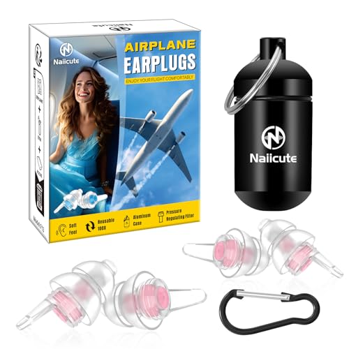 Naiicute Bouchon d'oreille pour Avion 2 Paires -Régule la Pression d'Air, Préviter douleurs auditives et filtre les Bruit Génants, 25dB, Réutilisables Boule Quies pour Enfant12 + Essentiels de Voyage