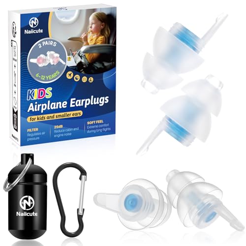 Naiicute Bouchons d’oreille enfant(6-12 ans) -2 paires Réutilisables boule quies enfant, protection auditive avion, voler sans douleur - Réguler la pression, silicone bouchon oreille anti bruit 25 dB