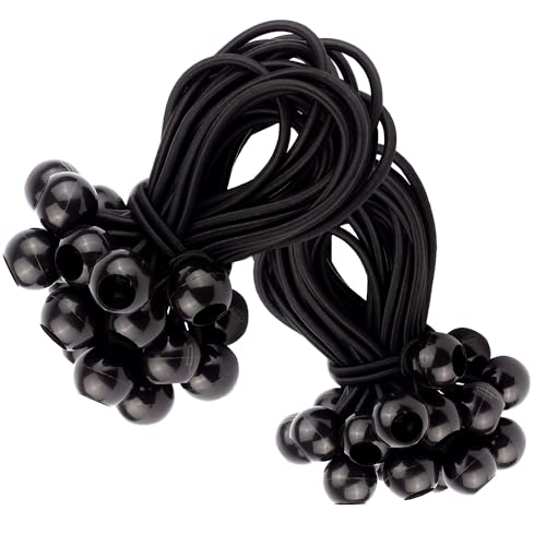 50 Tendeurs Elastique avec Boule pour Remorque, Bache, Camping, Pavillon, Rideaux, Tente etc. | Petit Sandow Corde Élastique en Noir