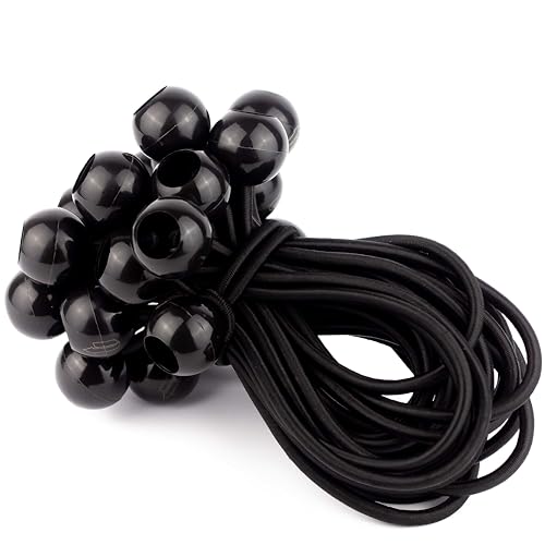 25 Tendeurs Elastique avec Boule pour Remorque, Bache, Camping, Pavillon, Rideaux, Tente etc. | Petit Sandow Corde Élastique en Noir
