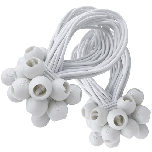 50 Tendeurs Elastique avec Boule pour Remorque, Bache, Camping, Pavillon, Rideaux, Tente etc. | Petit Sandow Corde Élastique en Blanc