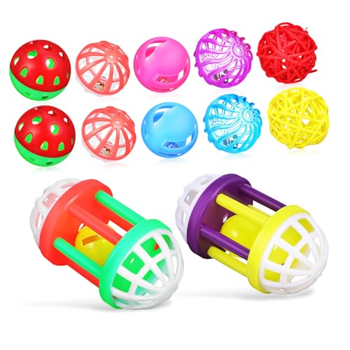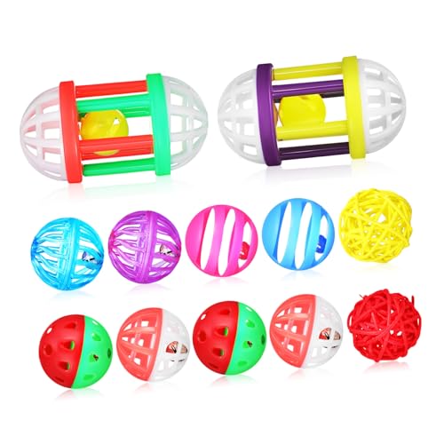 Gadpiparty 12pièces Boules Jouet Oiseaux Colorées pour Perroquets Perruches Balle Jouet Oiseaux avec Clochettes Masticable pour Entraînement pour Petits