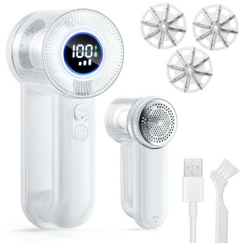 Rasoir Anti Bouloche Vetement, 1800mAh Rasoir Anti Bouloche Appareil Peluche USB Rechargeable Vêtement&Meuble, Appareil Coupe Peluche à 3 Vitesses Écran LED&3 Lame de Rechange pour Chandails/Rideaux