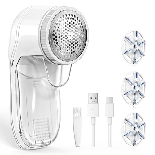 Rasoir Anti Bouloche, Rasoir Bouloche USB Rechargeable, Rasoir Textile Anti-Bouloches électrique avec 3 Lames Rechange et Brosse Nettoyage pour Vêtement, Couverture, Coussin, Pulls, Meubles, Tapis