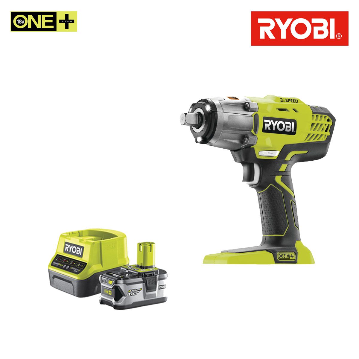 Pack RYOBI boulonneuse à chocs 18V One+ R18IW3-0 - 1 batterie 4.0Ah - 1 chargeur rapide 2.0Ah RC18120-140