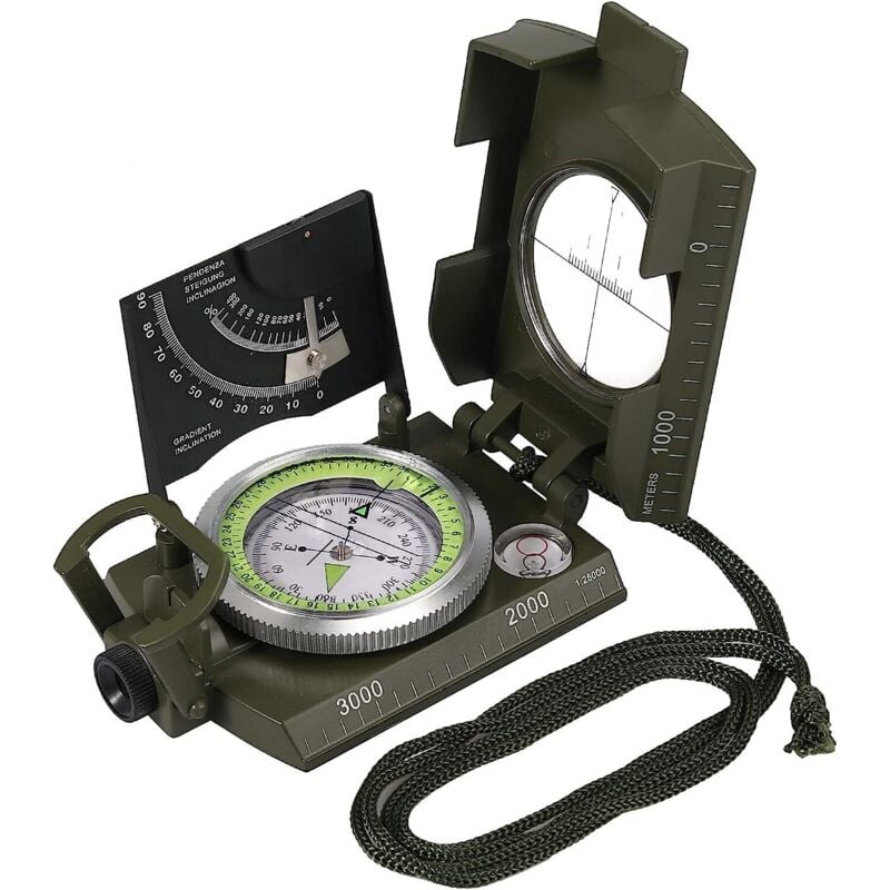 Aiperq – Boussole de randonnée militaire avec clinomètre – Métal – Fluorescente pour faible luminosité – Précision sur terrains accidentés