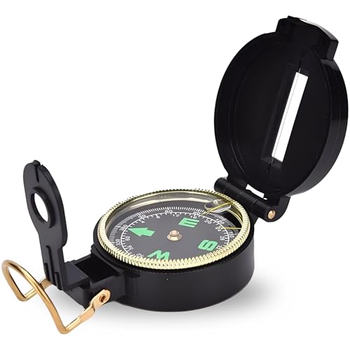 PARENCE – Boussole de Randonnée avec Couvercle et Loupe – Cadran Fluorescent – Lecture en Degrés – Boussole Portable pour Camping, Trek, Navigation, Scoutisme – Noir