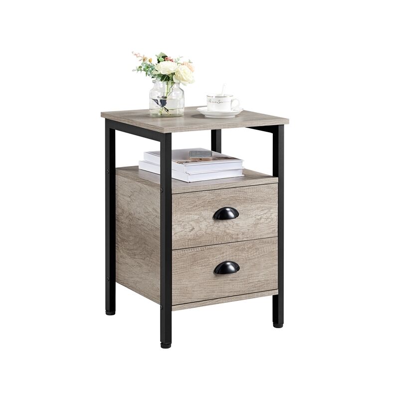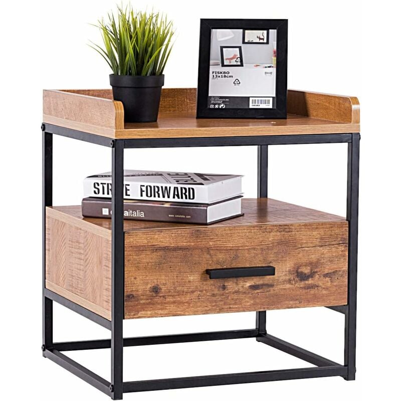 Yaheetech - Table d'Appoint Table de Chevet Industrielle en Bois Cadre en Métal Bout de Canapé avec Compartiment Ouvert 2 tiroirs pour Salon Chambre