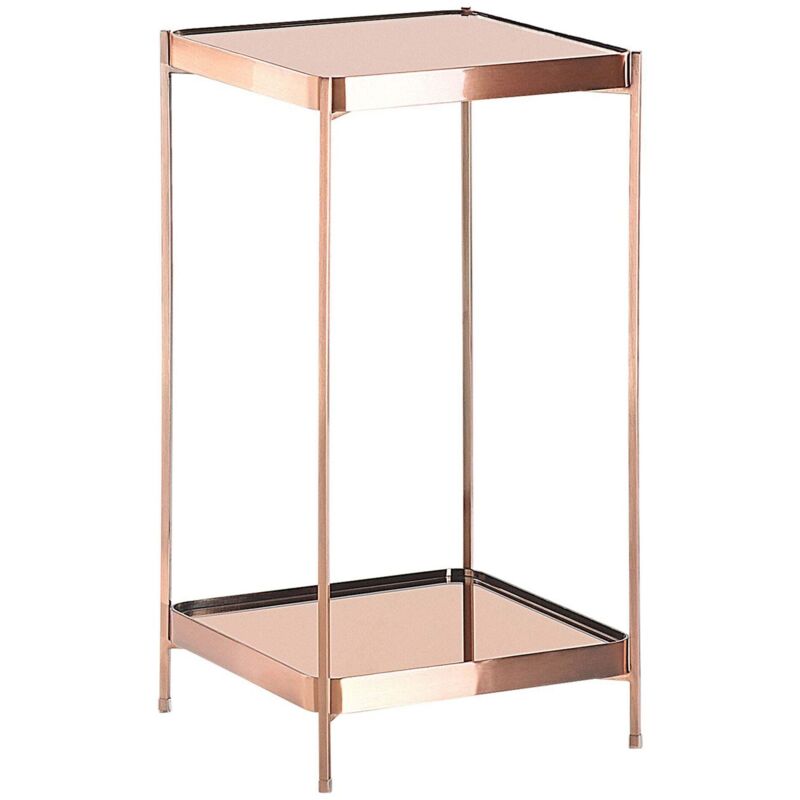 Bout de Canapé Haut Sellette en Métal Cuivré et Verre de Sécurité Finition Brillante et Design au Style Glamour pour Chambre ou Salon Tendance Beliani