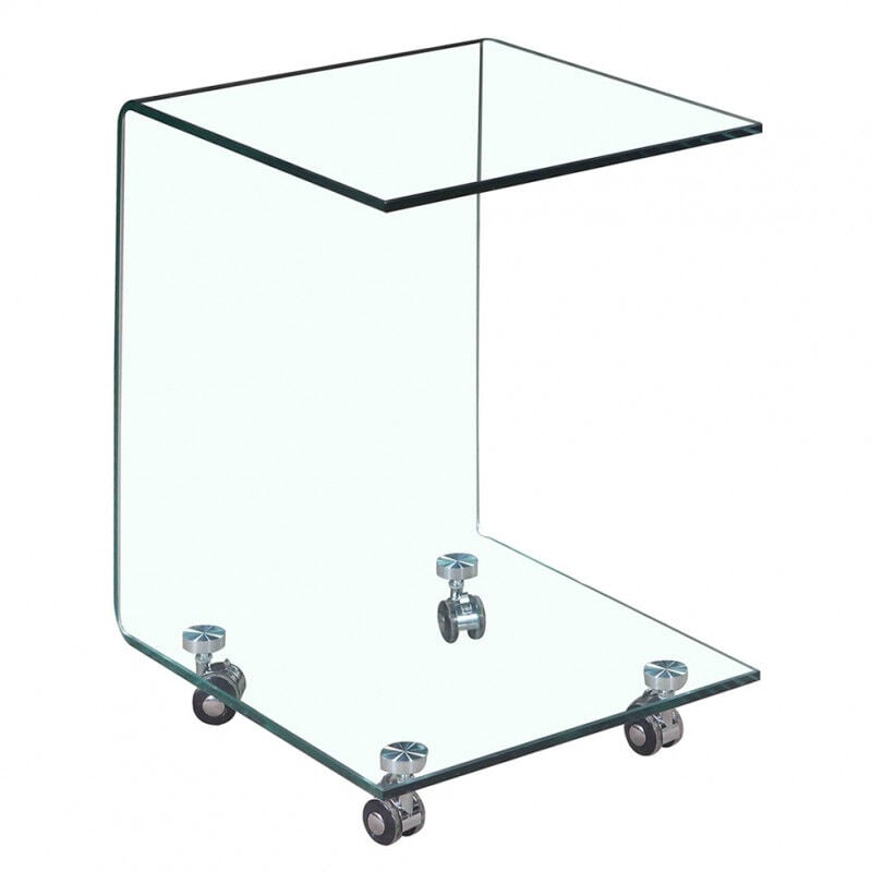 Meubletmoi - Bout de canapé carré h. 62 cm en verre trempé avec 4 roulettes - ice