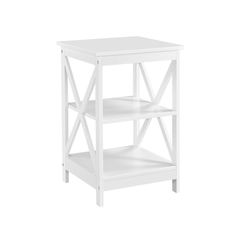 Table d'Appoint Blanche Bout de Canapé en Bois Table de Chevet 40 x 40 x 61 cm pour Salon Chambre, avec 3 Etagères, Pied en x, Style Rural Elégant