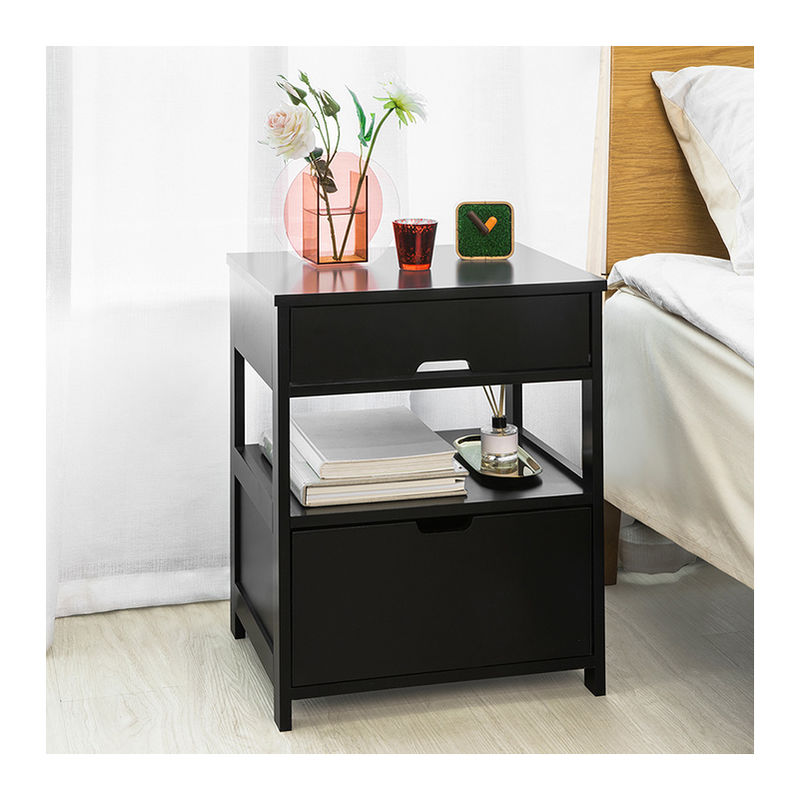 Table de Chevet à 2 Etagères Bout de Canapé avec 1 Tiroir de Rangement en Bois 45x40x49CM Style Moderne pour Salon,Chambre - Costway