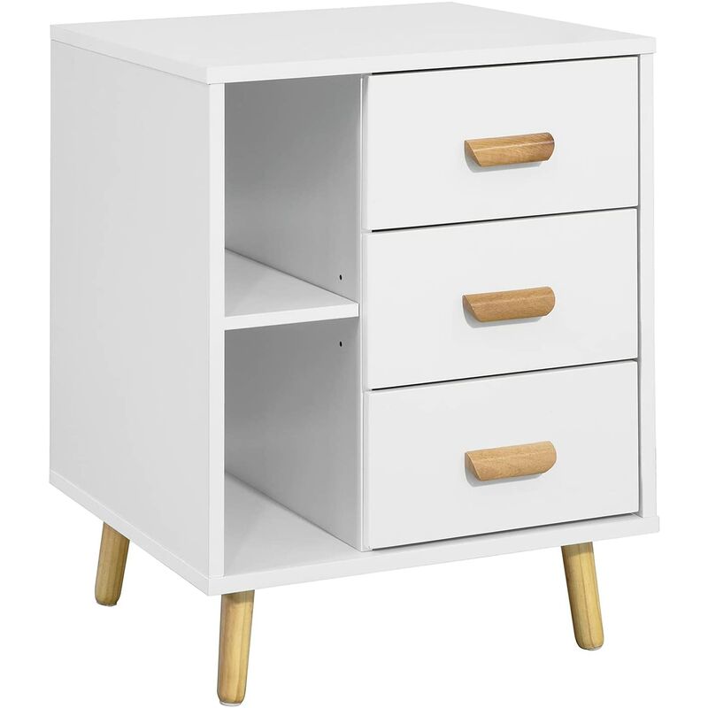 FurnitureR Bout de Canapé Blanc à 3 Niveaux, Petite Table d'Appoint de Salon, Étagère Rangement Ouvert, Cabinet à 3 Tiroirs Polyvalent, Design