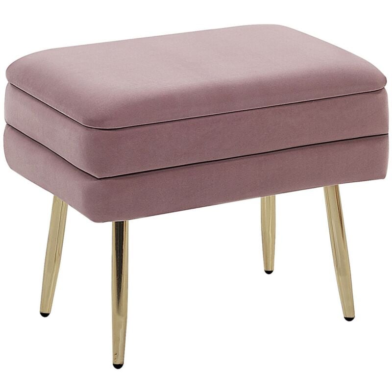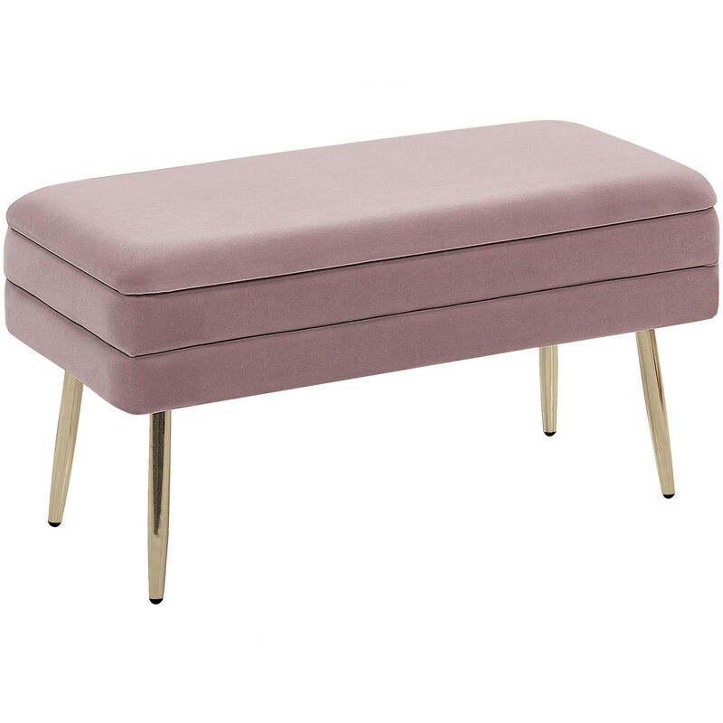 Banquette Design Bout de Lit en Velours Rose avec Pieds Obliques Dorés Meuble Déco Pratique pour Salon Chambre et Couloir Chic et Glamour Beliani