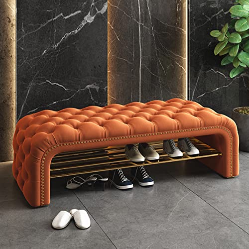 Macabane Banc de lit en velours orange pieds métal doré