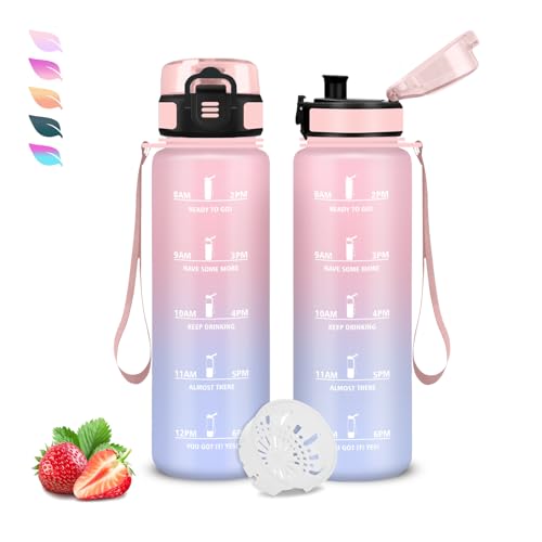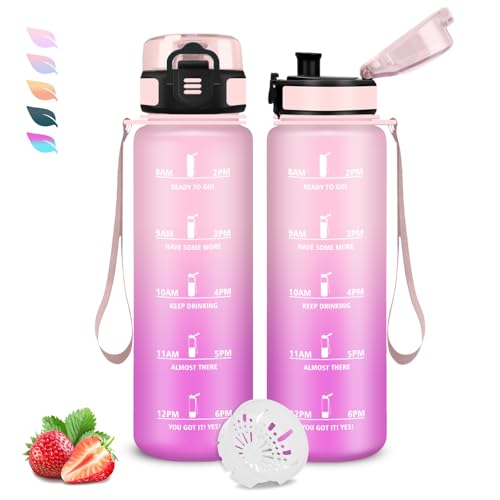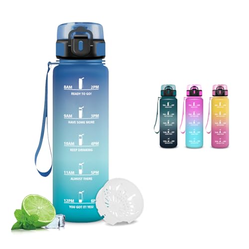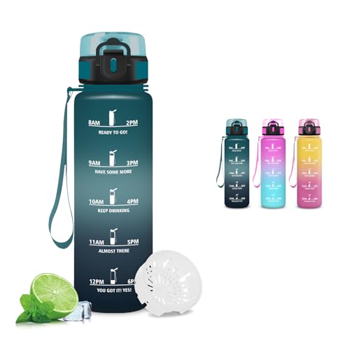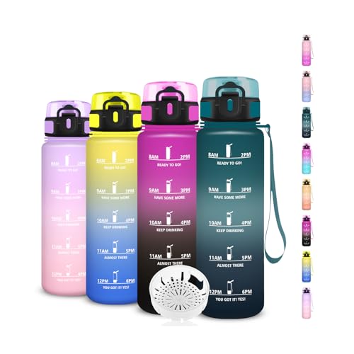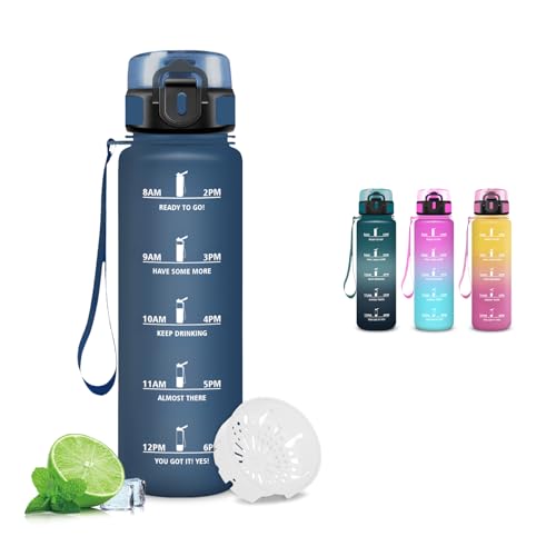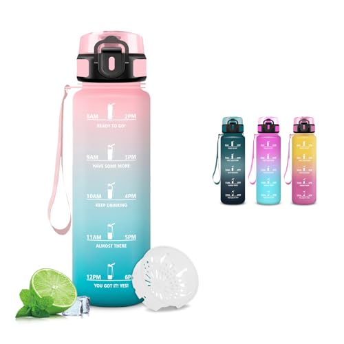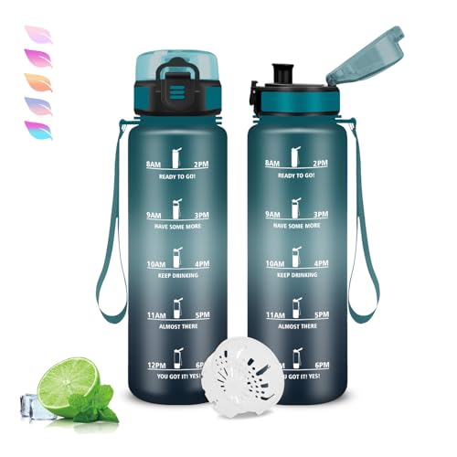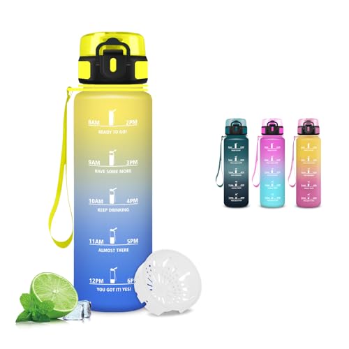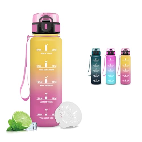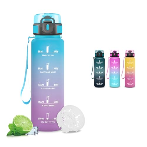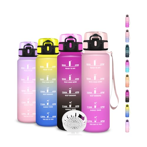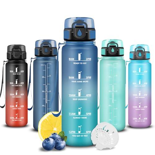 Mujigaga Gourde, Gourde 500ml, Bouteille Filtrante Anti-Fuite, Facile à Transporter, Bouteille d'eau pour Motivation, Facile à Nettoyer, pour Bureau, Voyage, Extérieur, Adulte, Camping, Voyage