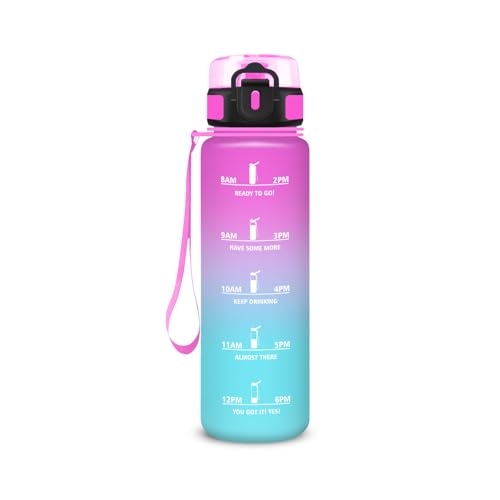 Gourde Enfant, Gourde 500ml, Bouteille Filtrante Anti-Fuite, Facile à Transporter, Bouteille Graduée avec Marqueur de Temps, Facile à Nettoyer, pour Running, Voyage, Bureau, Extérieur, Sportif, École