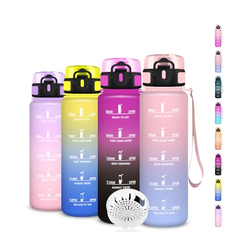 Grsta Gourde 500ml, Gourde Enfant, Bouteille Filtrante Anti-Fuite, Facile à Nettoyer, Bouteille Motivation avec Marqueur de Temps, Facile à Transporter, pour Running, Voyage, École, Bureau, Extérieur