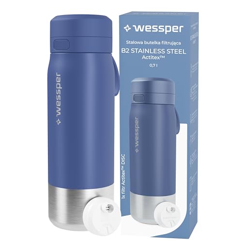 Wessper Gourde Filtrante, Bouteille d'eau en Acier Inoxydable avec Filtre Actitex Disc, 700 ml, Filtre a Eau à Charbon, Réduit le Chlore, BPA FREE -Bleu
