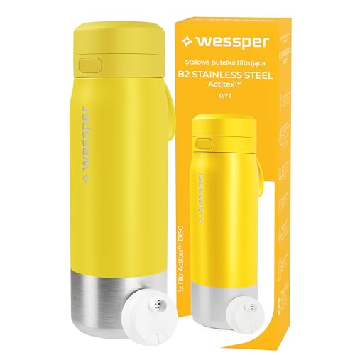 Wessper Gourde Filtrante, Bouteille d'eau en Acier Inoxydable avec Filtre Actitex Disc, 700 ml, Filtre a Eau à Charbon, Réduit le Chlore, BPA FREE - Jaune