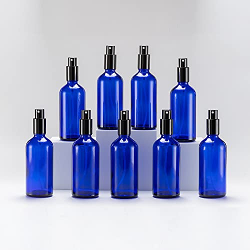YIZHAO Flacon Spray Vide 100ml, Bleu Bouteille Spray Verre, avec Brouillard de Pulverisateur Fine, pour Huiles Essentielles, Aromathérapie, Parfums, Nettoyage, Voyage, Pharmacie – 9Pcs