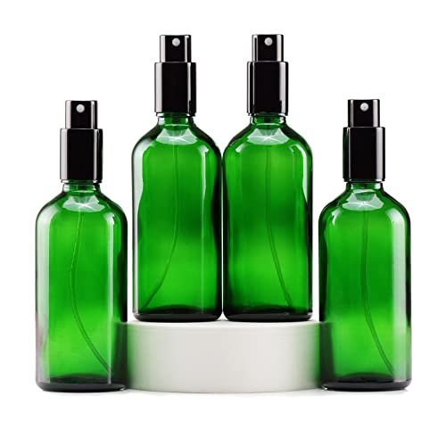 YIZHAO Flacon Spray Vide 100ml, Vert Bouteille Spray Verre, avec Brouillard de Pulverisateur Fine, pour Huiles Essentielles, Aromathérapie, Parfums, Nettoyage, Voyage, Pharmacie – 4Pcs