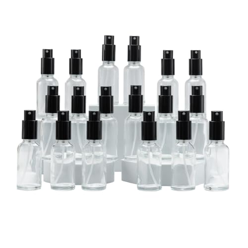 YIZHAO Flacon Spray Vide 30ml, Transparent Bouteille Spray Verre, avec Brouillard de Pulverisateur Fine, pour Huiles Essentielles, Aromathérapie, Parfums, Nettoyage, Voyage, Pharmacie – 18Pcs