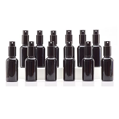 YIZHAO Flacon Spray Vide 30ml, Noir Bouteille Spray Verre, avec Brouillard de Pulverisateur Fine, pour Huiles Essentielles, Aromathérapie, Parfums, Nettoyage, Voyage, Pharmacie – 12Pcs