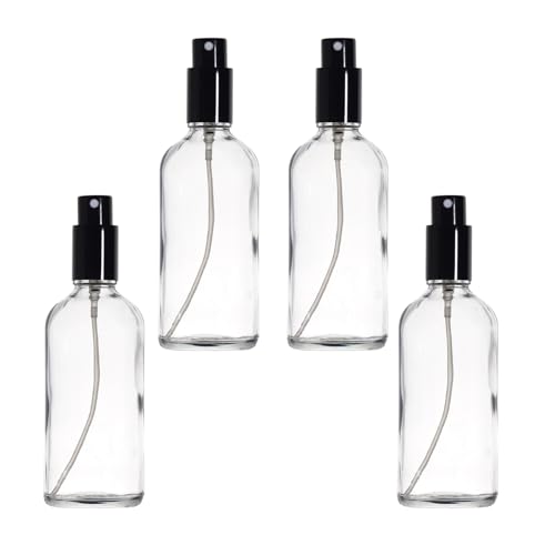 YIZHAO Flacon Spray Vide 100ml, Transparent Bouteille Spray Verre, avec Brouillard de Pulverisateur Fine, pour Huiles Essentielles, Aromathérapie, Parfums, Nettoyage, Voyage, Pharmacie – 4Pcs