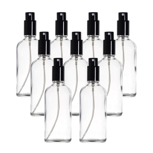 YIZHAO Flacon Spray Vide 100ml, Transparent Bouteille Spray Verre, avec Brouillard de Pulverisateur Fine, pour Huiles Essentielles, Aromathérapie, Parfums, Nettoyage, Voyage, Pharmacie – 9Pcs