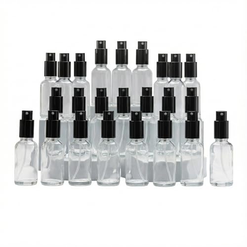 YIZHAO Flacon Spray Vide 30ml, Transparent Bouteille Spray Verre, avec Brouillard de Pulverisateur Fine, pour Huiles Essentielles, Aromathérapie, Parfums, Nettoyage, Voyage, Pharmacie – 24Pcs