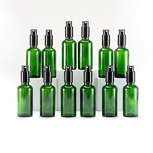YIZHAO Flacon Spray Vide 50ml, Vert Bouteille Spray Verre, avec Brouillard de Pulverisateur Fine, pour Huiles Essentielles, Aromathérapie, Parfums, Nettoyage, Voyage, Pharmacie – 12Pcs