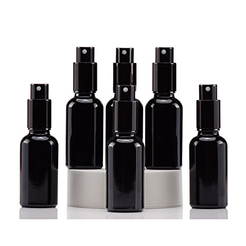 YIZHAO Flacon Spray Vide 50ml, Noir Bouteille Spray Verre, avec Brouillard de Pulverisateur Fine, pour Huiles Essentielles, Aromathérapie, Parfums, Nettoyage, Voyage, Pharmacie – 6Pcs