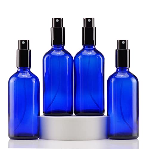 YIZHAO Flacon Spray Vide 100ml, Bleu Bouteille Spray Verre, avec Brouillard de Pulverisateur Fine, pour Huiles Essentielles, Aromathérapie, Parfums, Nettoyage, Voyage, Pharmacie – 4Pcs