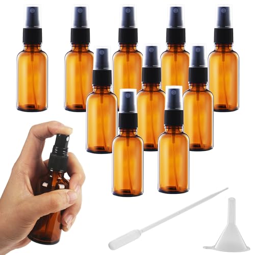 10PcsFlacon Spray Vide, 30 ml Ambré Bouteille Spray Verre, Flacon Huile Essentielle Vide avec entonnoir et Goutteur, adaptés aux huiles essentielles, Aromathérapie, Parfum, Soins de la peau, massage