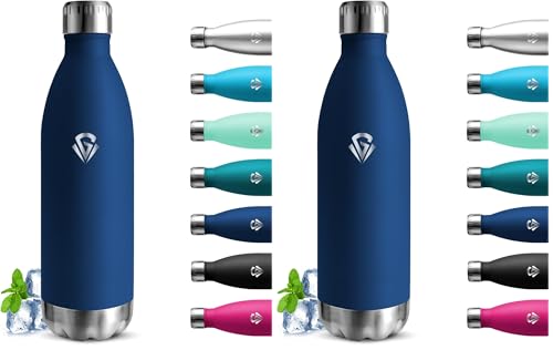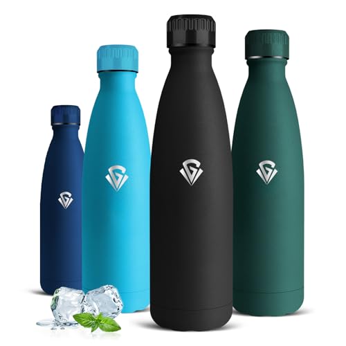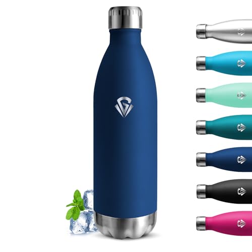 Grsta Gourde- 1l- Gourde Isotherme, Sans BPA, Gourde Inox, 24h Froid & 12h Chaud, Bouteille Isotherme, Anti Fuite, Double Vide, Bouteille d'eau pour Bureau, Voyage, Gym, Camping, Sport, Bleu Foncé