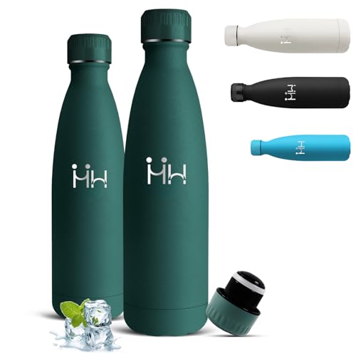 Gourde Isotherme, Gourde 500ml, Sans BPA, Gourdes Inox, 24h Froid & 12h Chaud, Gourdes Metal, Anti Fuite, Gourd Reutilisable, Double Vide, Bouteille d'eau pour École, Bureau, Camping, Voyage, Running