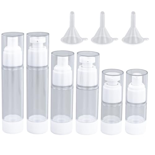 MERVYNGLYNNHUNTER 6 Pièces Airless en Plastique Bouteille Pompe Vide,15 ml/30 ml/50 ml,Petit Flacons À Pompe sans Air, Rechargeables Distributeurs de Crème Pour lotion, crème,Avec 3 entonnoirs