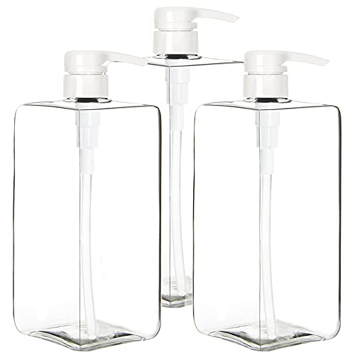 Youngever Lot de 3 Bouteille Pompe Shampoing 1L, Bouteille Pompe Vide Plastique 1000ML, Distributeur Flacon Pompe