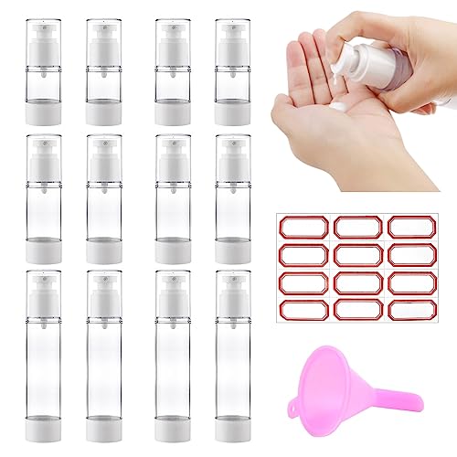 DOUSELLA 12 PCS Bouteille Flacon Vide 15ml 30ml 50ml Flacon Pompe Airless Flacon Voyage Avion Spray Flacon Pulvérisateur Vide Flacon Spray Vide avec Entonnoir et Etiquettes pour Tonique Lotion Crème